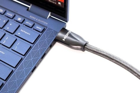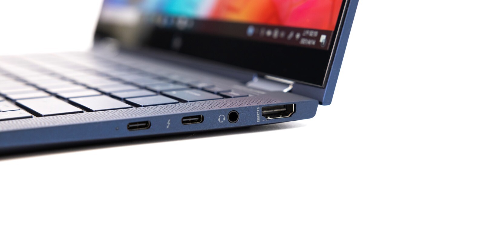 右邊則是標準規格的 HDMI 影像輸出,還有兩組Thunderbolt TM 4 向下相容 USB 並且都支援充電連接,最高可達 40Gbps 高速傳輸(USB 模式 20Gbps),並且同時也用來當作電源充電孔支援 PD 充電規格,兩個孔位都可充電,一來節省了電源接孔直接用 USB-Type-C, Thunderbolt™ 4 在充電與傳輸需求間可以彈性使用,同時也能讓商務人士使用自己購買的第三方 PD 充電器或者隨身電源充電 (需支援 PD 充電)