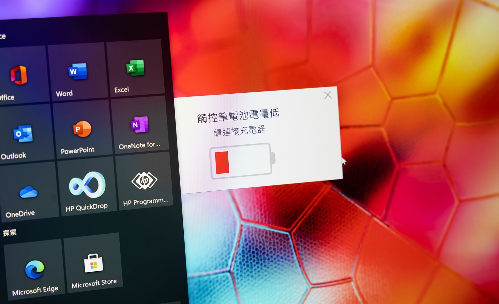 HP Elite Dragonfly G2在觸控筆沒電的時候也會提醒記得要充電了