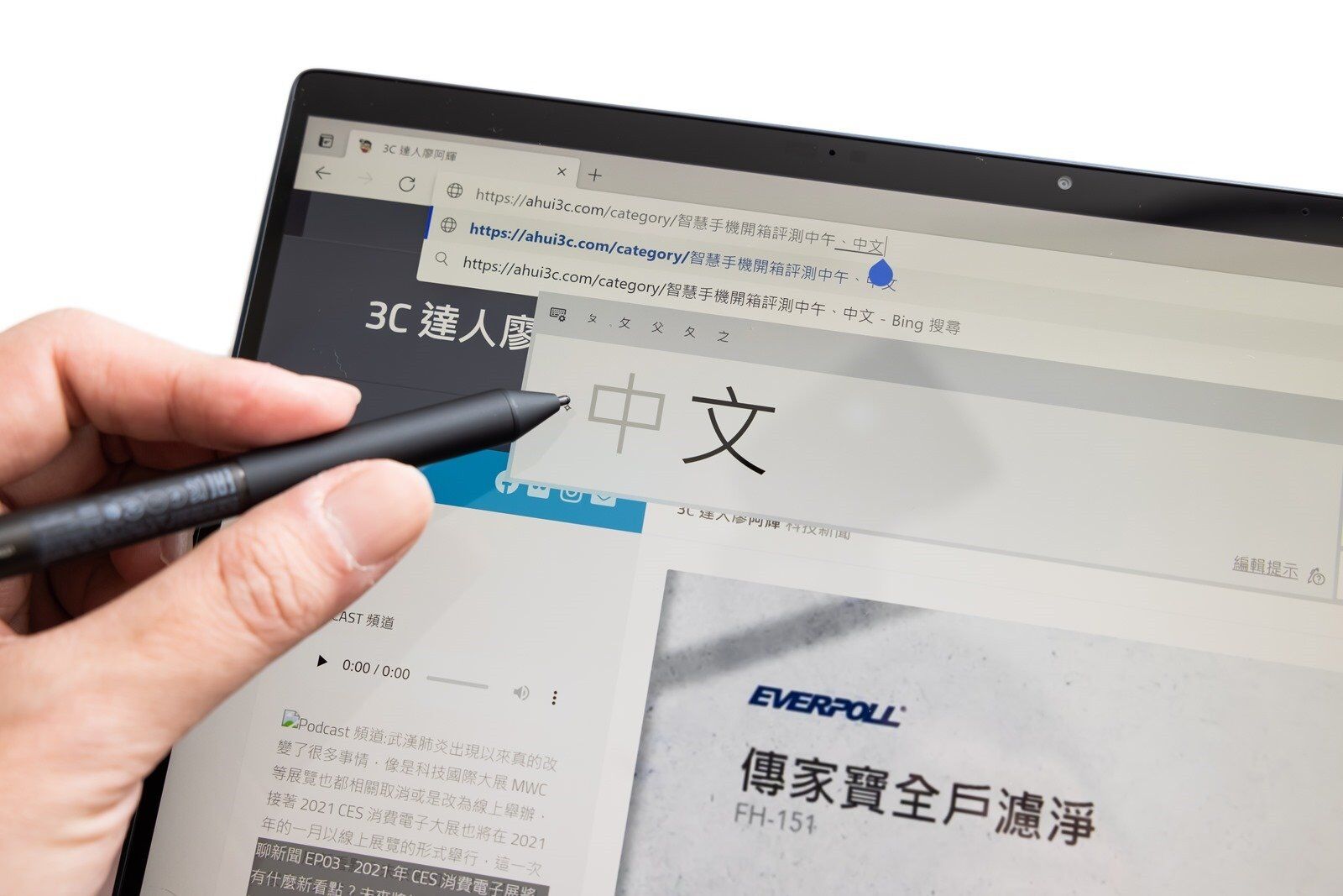 - 觸控螢幕支援數位筆和 Windows Ink ,可選用原廠觸控筆手寫