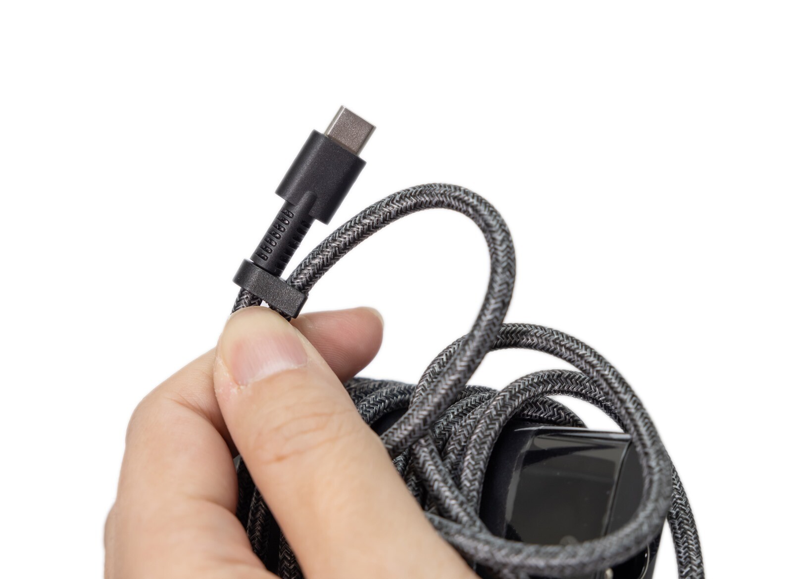 充電器的編織線材部分感覺有做過特別加強,摸起來的手感非常的好。