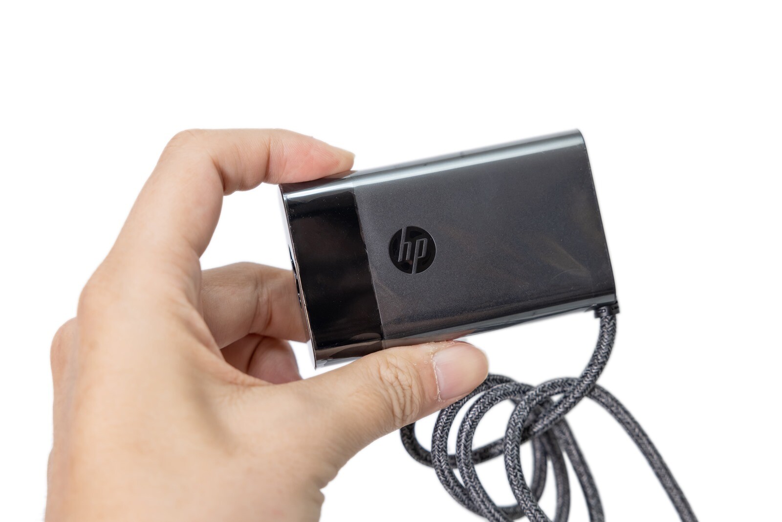 HP Elite Dragonfly G2 變壓器十分小巧,採用 USB C接口的 PD 65W 快速充電規格,搭配HP快充技術的HP Elite Dragonfly G2僅需要30分鐘就可以替全機充電達到50%