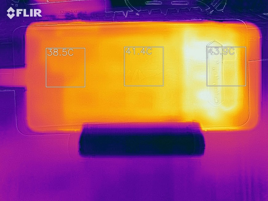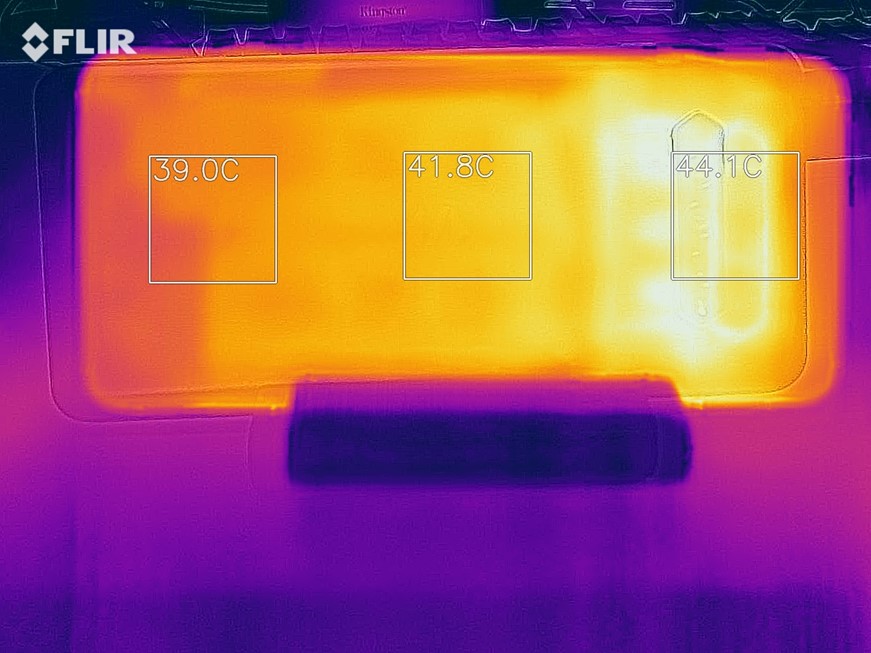 在最這嚴苛的測試下,用紅外線儀器測試最高溫為 44.1 度
