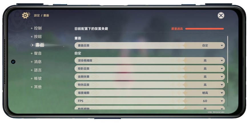 除了預設設定,我們也將調整到最高畫質並開啟 60 fps 模式,實際進行 30 分鐘的遊戲測試