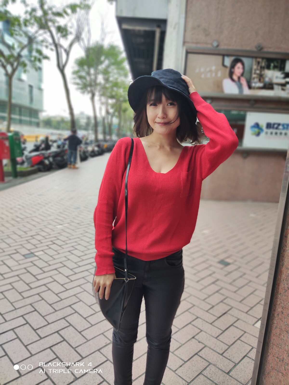 前鏡頭部份黑鯊 4 則是採用 2000 萬像素自拍鏡頭,也支援 AI 辨識的景深效果模擬,效果也十分不錯,就也來看看妹子的自拍照吧