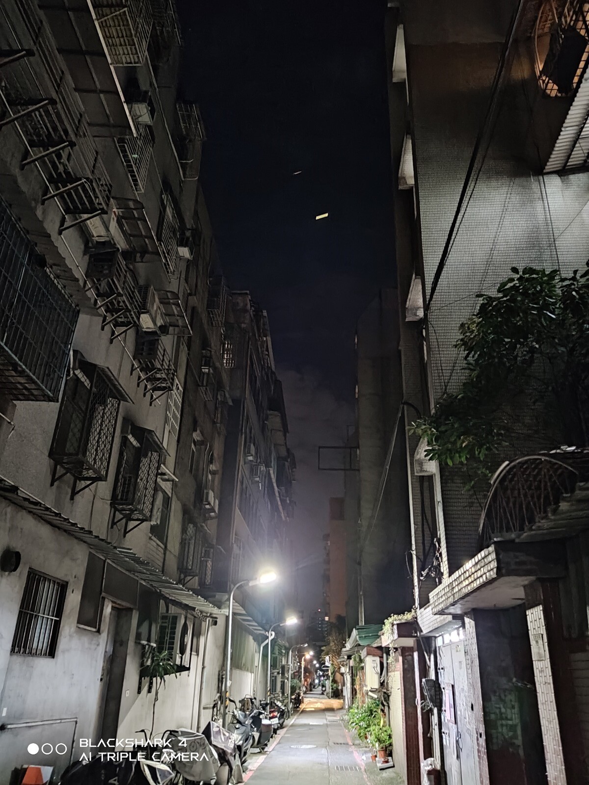 雖然沒有 OIS 光學防手震的功能,不過實際拍攝來看夜間拍攝的畫質與拍攝成功率是都不需要擔心。實際上大尺寸感光元件與像素合一技術讓光線不太充足的情況也有很不錯的成功率,並且黑鯊 4 也有支援基於多張合成技術的超級夜景拍攝功能