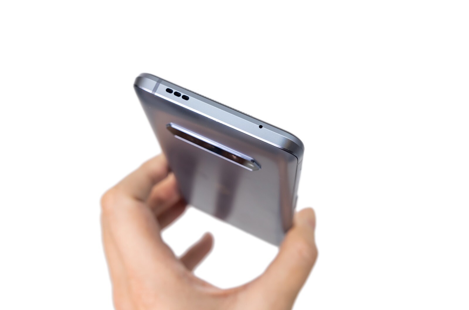 回到黑鯊 4 機器本身我們繼續看,機器頂部有大型的揚聲器開孔與收音麥克風