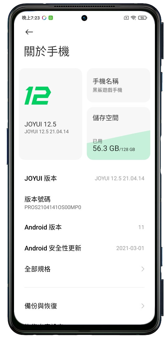 - 搭載基於 MIUI 12.5 的 JOYUI 12.5 系統