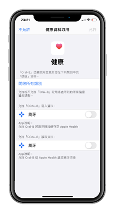 既然提到這個,就要介紹一下歐樂B 的 APP,使用簡單,而且功能相當齊全!有多簡單呢?基本上只要下載完之後,跟著螢幕步驟走就能直接使用。唯一需要提醒大家一下的,就是在連接時需要「按一次開關」,但牙刷如果在充電,開關不會有反應,務必要拿起來再嘗試連線喔!