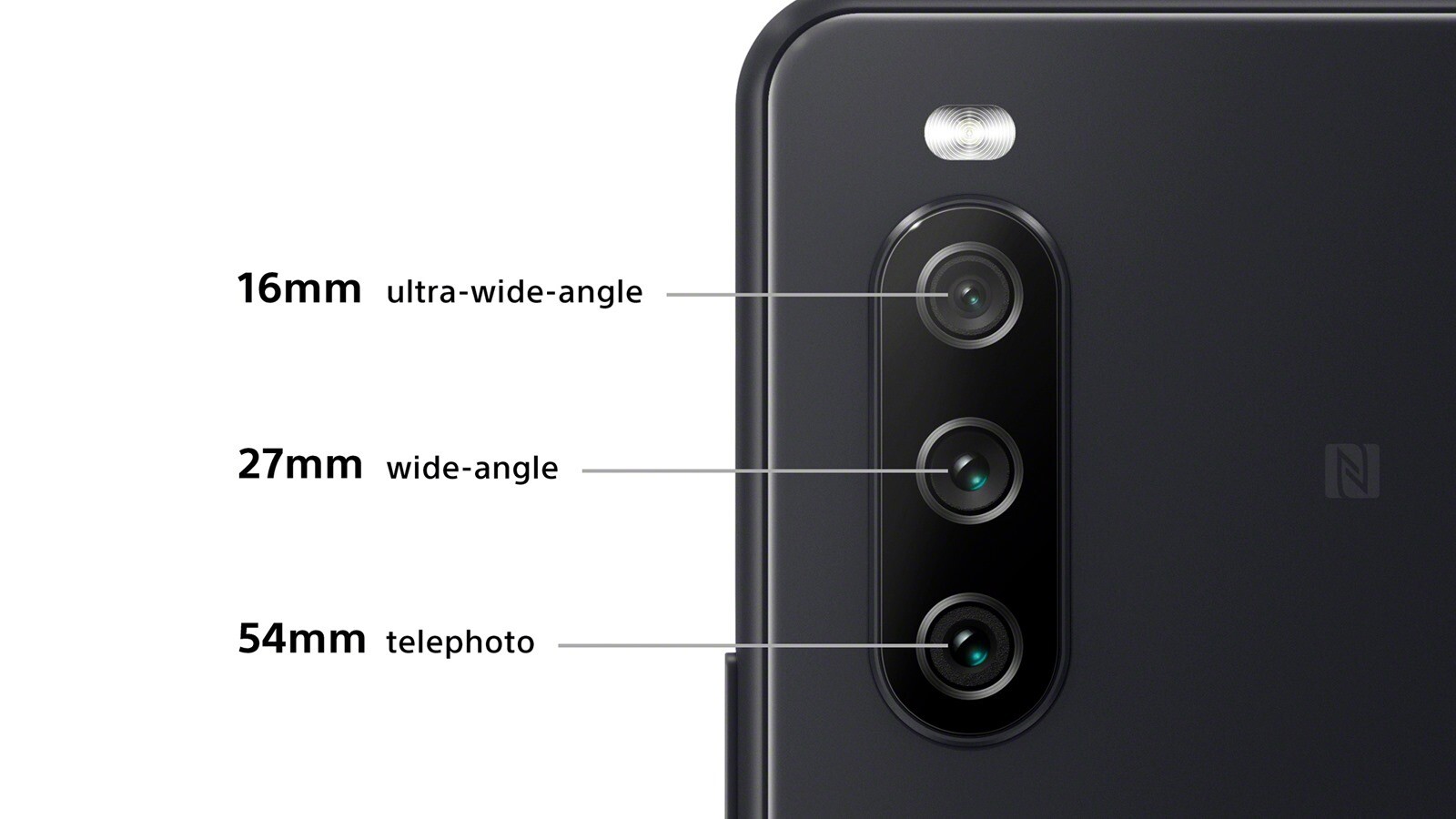 Xperia 10 III 獨立三鏡頭相機升級,輕鬆拍攝精彩的瞬間,是聰明攝影的好選擇!Xperia 10 III 搭載 1200 萬畫素主鏡頭與兩個 800 萬畫素鏡頭,16mm 超廣角鏡頭捕捉寬闊風景,展現畫面張力;27mm 廣角鏡頭駕馭各種不同日常拍攝場景;54mm 望遠鏡頭拉近主體距離,為生動人像拍攝的最佳選擇。