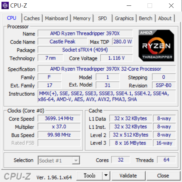- 處理器:AMD Ryzen Threadripper 3970X