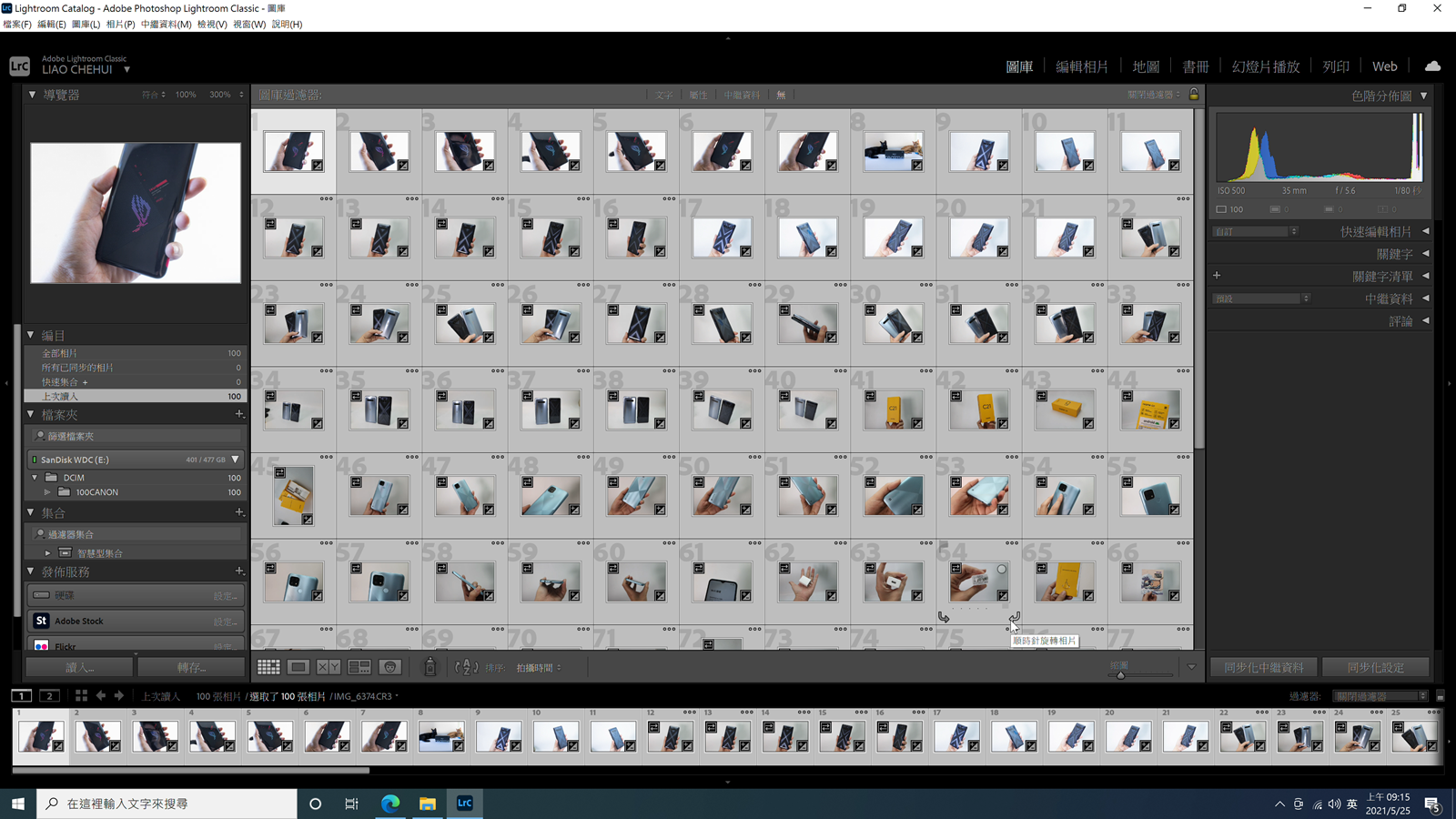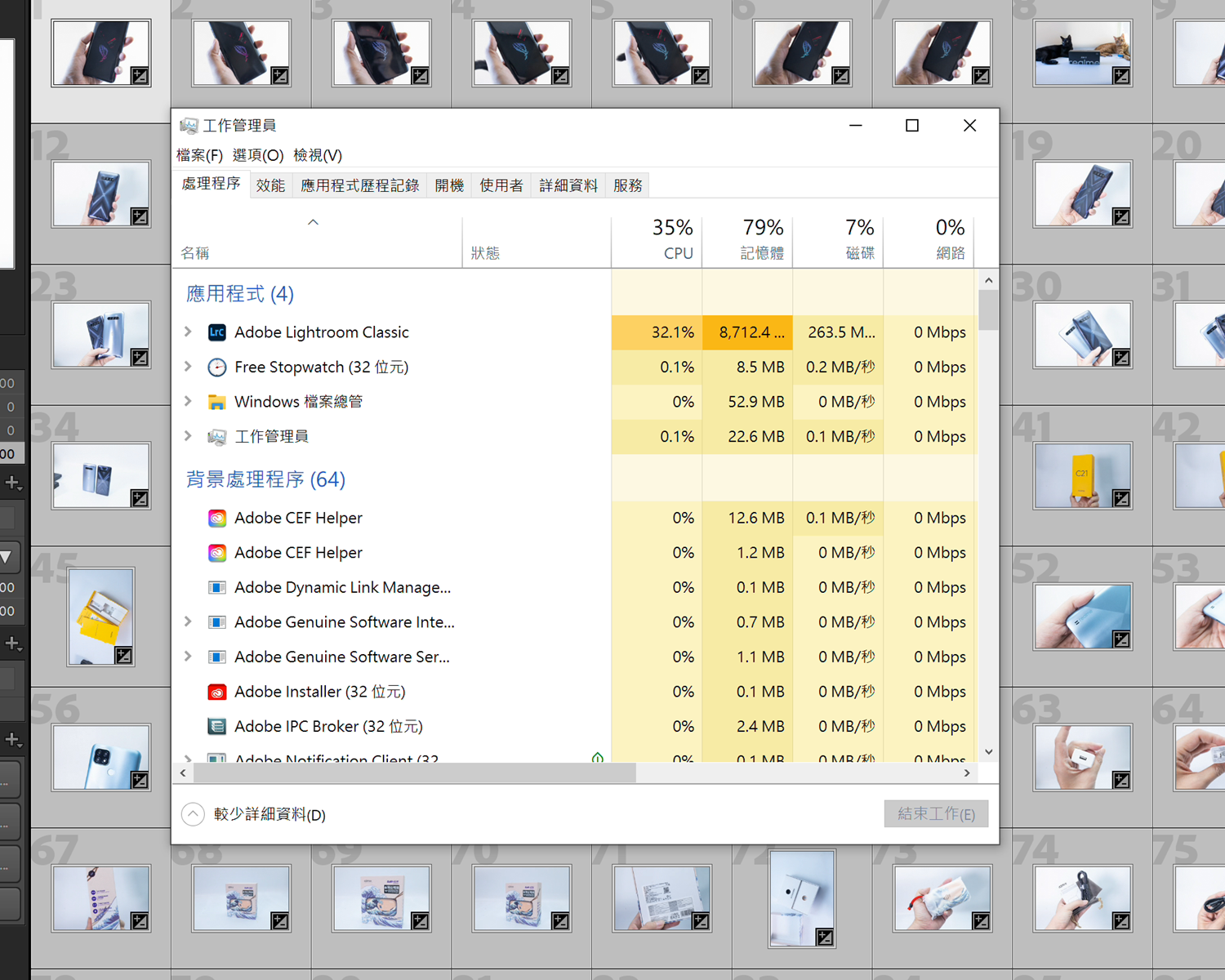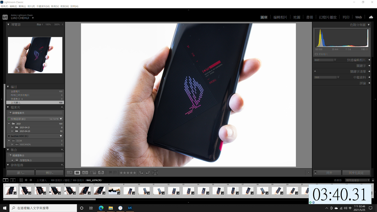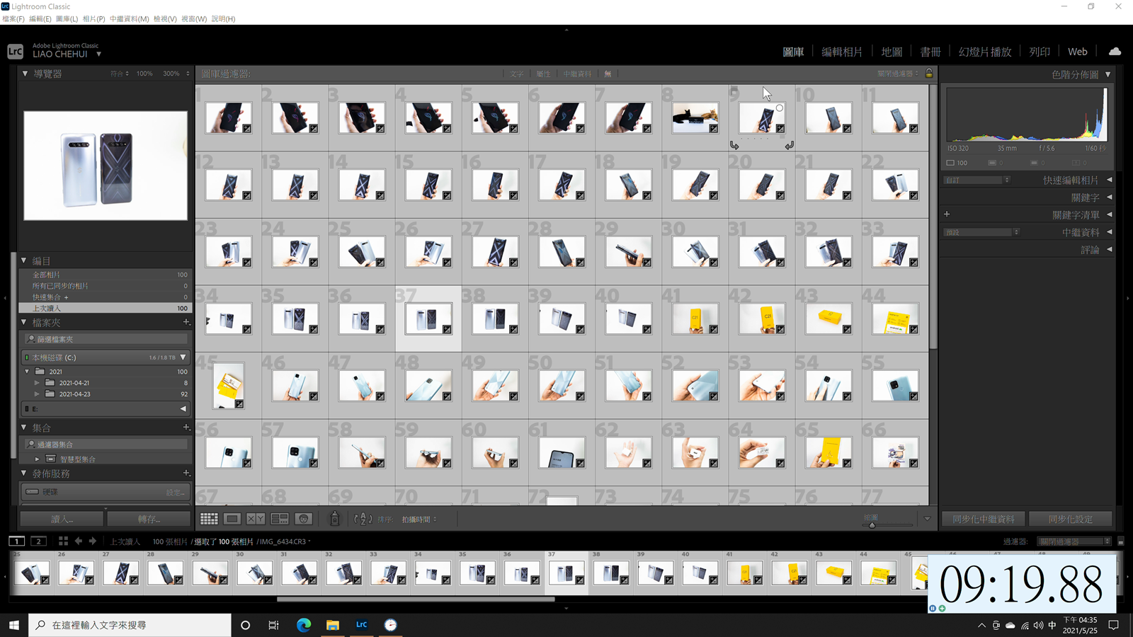 除了性能測試軟體之外阿輝也測試了常用的內容創作軟體的實測,首先是 Adobe Lightroom Classic 的相片轉檔,阿輝實際處理 100 張 Canon EOS R5 拍攝的 4500 萬像素 RAW 相片,進行調色與轉檔為 JPG 處理。