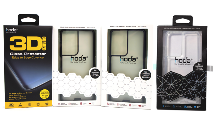 指紋辨識沒問題!輕薄也有軍規保護!給三星 Galaxy S21 / S21+ / S21 Ultra 完整保護『UV 膠全貼合玻璃保護貼』+『hoda 柔石軍規防摔殼』+『hoda 晶石玻璃軍規防摔殼』